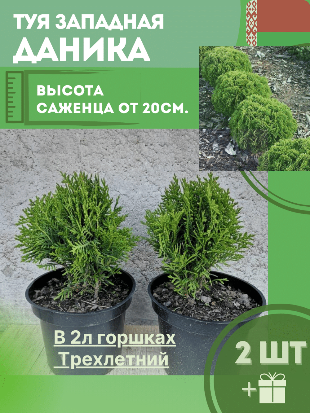 Туя саженец западная Даника шаровидная 2шт (с2)