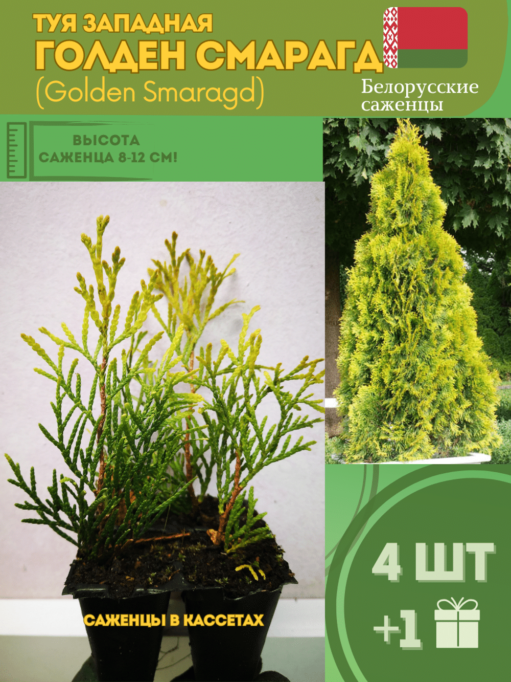 Туя саженец западная конусовидная Голден Смарагд 4шт (кассета)