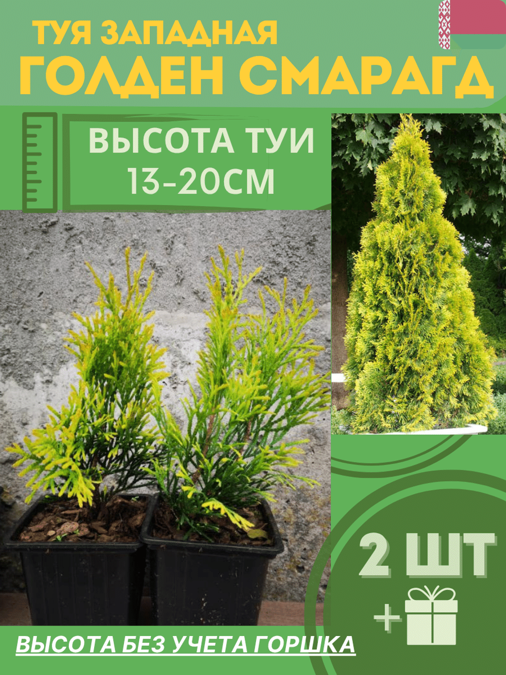 Туя саженец западная конусовидная Голден Смарагд 2шт (р9)