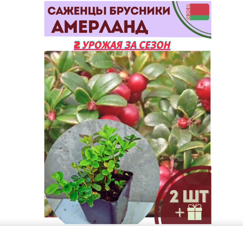 Саженцы брусники Амерланд при благоприятных условиях выращивания дают урожай дважды за сезон, сроки созревания зависят от климата, у нас в РБ они такие: конец июля, начало августа и второй - конец сентября, начало октября. Урожайность высокая, около 300 г с куста! Кусты брусники очень декоративны, когда цветут и плодоносят. Польза брусники - ее ягоды, также применяются и листья брусники для укрепления здоровья. Сорт брусники садовой является самым крупноплодным овальной формы, имеют тонкую кожицу.